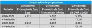 De acuerdo con el análisis de la consultora, la proyección de los niveles de vertimiento en el largo plazo (2030-2032) son menores en comparación al corto plazo, «debido fundamentalmente a la puesta en servicio operativo de la línea HVDC Kimal-Lo Aguirre 500 kV, que suprime en su totalidad el vertimiento originado por congestión en transmisión».